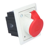 EXTREM Gniazdo z klapką hermetyczną IP54, 2p+Z, 16A, czarne z czerwoną nakrętką GN-54