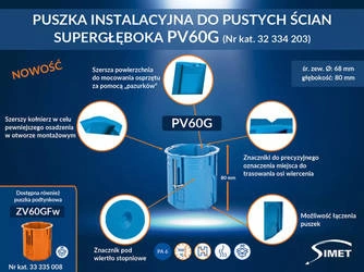 SIMET Puszka podtynkowa 60mm, ekstra - głęboka 80 mm, z wkrętami, pomarańczowy ZV60GFw